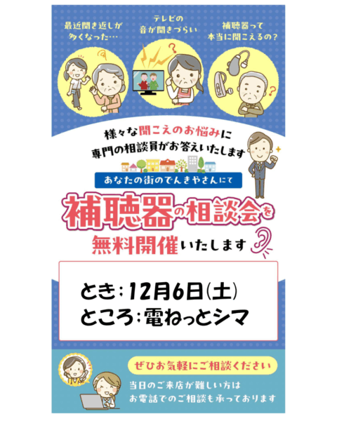 期間中の12月6日(土) 9:30~12:00 聞こえの相談会を開催します👂