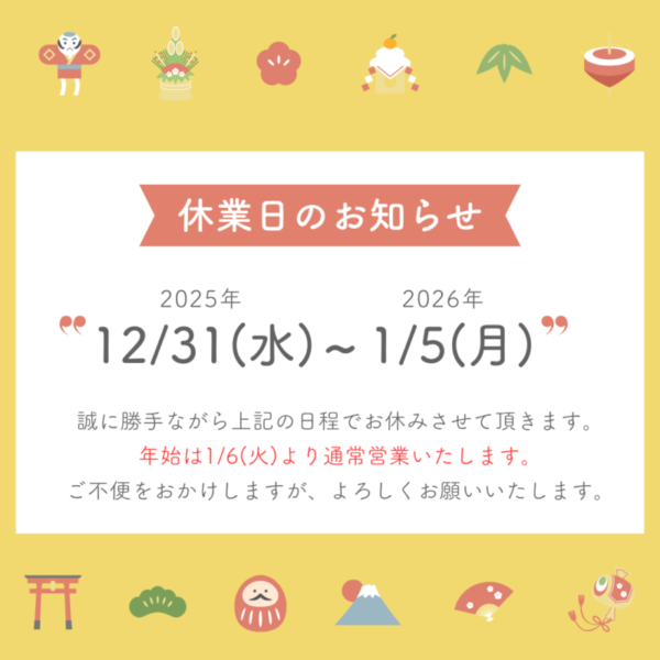 日頃より電ねっとシマをご愛顧いただきありがとうございます😊 年末年始の休業のお知らせです。 2025年12月31日(水)~2026年1月5日(月)までとなります。 2026年1月6日から通常通り営業いたします。 ご不便をおかけしますがよろしくお願いいたします。