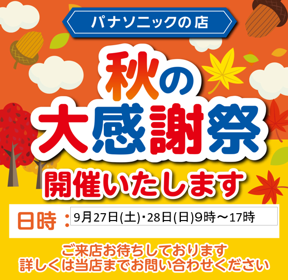 今週末の9月27(土)・28日(日) 当店にて、【秋の大感謝祭】を開催いたします。